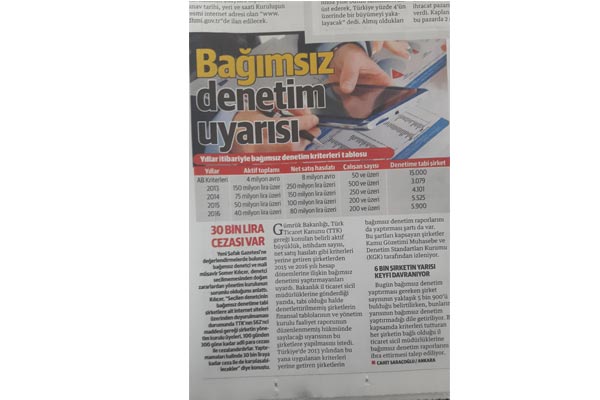 Hürriyet ve Yeni Şafak Gazetesi Şirketlere Bağımsız Denetim Uyarısı